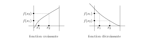 \input fig4tex.tex %%%%%%%%%%% DESSIN % pts caracteristiques \figinit{cm}\figpt 1:(1.5,2.5)\figpt 2:(1.5,1.7)\figpt 3:(1.5,1)\figpt 4:(1,0.5)\figpt 5:(1.5,0) \figpt 6:(2,0.5)\figpt 7:(3,0.5)\figpt 8:(4,0)\figpt 9:(4.5,0.5)\figpt 10:(1.5,0.3) \figpt 11:(4,2.3)\figpt 12:(4,2.5)\figpt 13:(3,1.7)\figpt 14:(2,1)\figpt 15:(4.5,2.7) %% poststript \psbeginfig{} \psline[1,5]\psline[4,9]\psline[8,12] \pssetdash{5} \psline[6,14,3]\psline[7,13,2] \pssetdash{\defaultdash} \pscurve [4,10,14,13,11,15] \psendfig % writing \figvisu{\figBoxA}{fonction croissante}{ \figsetmark{$\bullet$} \figwrites 6:$x_1$ (0.1) \figwrites 7:$x_2$ (0.1) \figwritew 2:$f{(}x_2{)}$ (0.1) \figwritew 3:$f{(}x_1{)}$ (0.1) } % pts caracteristiques \figinit{cm} \figpt 1:(1.5,2.5)\figpt 2:(1.5,1.7)\figpt 3:(1.5,1)\figpt 4:(1,0.5)\figpt 5:(1.5,0) \figpt 6:(2,0.5)\figpt 7:(3,0.5)\figpt 8:(4,0)\figpt 9:(4.5,0.5) \figpt 10:(4,0.5)\figpt 11:(4,2.3)\figpt 12:(4,2.5)\figpt 14:(3,1) \figpt 13:(2,1.7)\figpt 15:(4.5,0.7)\figpt 16:(1,2.7)\figpt 17:(0.5,3) %% poststript \psbeginfig{} \psline[1,5]\psline[4,9]\psline[8,12] \pssetdash{5} \psline[6,13,2]\psline[7,14,3] \pssetdash{\defaultdash} \pscurve [17,16,13,14,10,15] \psendfig % writing \figvisu{\figBoxB}{fonction d\'ecroissante}{ \figsetmark{$\bullet$} \figwrites 6:$x_1$ (0.1) \figwrites 7:$x_2$ (0.1) \figwritew 2:$f{(}x_1{)}$ (0.1) \figwritew 3:$f{(}x_2{)}$ (0.1) } \centerline{\box\figBoxA\hfil\box\figBoxB} %%%%%%%%%% FIN DESSIN \bye |