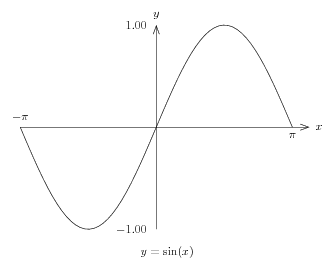 \input fig4tex \def\GraphLegend{$y = \sin(x)$} % 1. Definition of characteristic points \figinit{mm} \def\Xmin{-39.99999} \def\Ymin{-30.00000} \def\Xmax{39.99999} \def\Ymax{29.99999} \def\Xori{39.99999} \def\Yori{30.00000} \figpt0:(\Xori,\Yori) % 2. Creation of the graphical file \psbeginfig{} \def\Xmaxx{45} % To customize the position \def\Ymaxx{\Ymax} % of the arrow-heads of the axes. \psaxes 0(\Xmin, \Xmaxx, \Ymin, \Ymaxx) \pslineC( 0 30.00022, 1.35593 26.81027, 2.71186 23.65647, 4.06779 20.57454, 5.42372 17.59941, 6.77966 14.76478, 8.13559 12.10277, 9.49152 9.64355, 10.84745 7.41498, 12.20338 5.44230, 13.55932 3.74787, 14.91525 2.35089, 16.27118 1.26719, 17.62711 .50905, 18.98305 .08505, 20.33898 0, 21.69491 .25486, 23.05084 .84675, 24.40677 1.76896, 25.76271 3.01103, 27.11864 4.55891, 28.47457 6.39505, 29.83050 8.49864, 31.18644 10.84585, 32.54237 13.41008, 33.89830 16.16229, 35.25423 19.07128, 36.61016 22.10410, 37.96610 25.22639, 39.32203 28.40276, 40.67796 31.59723, 42.03389 34.77360, 43.38983 37.89589, 44.74576 40.92871, 46.10169 43.83770, 47.45762 46.58991, 48.81355 49.15414, 50.16949 51.50135, 51.52542 53.60494, 52.88135 55.44108, 54.23728 56.98896, 55.59322 58.23103, 56.94915 59.15324, 58.30508 59.74513, 59.66101 59.99999, 61.01694 59.91494, 62.37288 59.49094, 63.72881 58.73280, 65.08474 57.64910, 66.44067 56.25212, 67.79661 54.55769, 69.15254 52.58501, 70.50847 50.35644, 71.86440 47.89722, 73.22033 45.23521, 74.57627 42.40058, 75.93220 39.42545, 77.28813 36.34352, 78.64406 33.18972, 80 29.99977952958272699600 ) \psendfig % 3. Writing text on the figure \figvisu{\figBoxA}{\GraphLegend}{% \figptsaxes 1:0(\Xmin, \Xmaxx, \Ymin, \Ymaxx) % Points 1 and 2 are the end points of the arrows \figwritee 1:(5pt) \figwriten 2:(5pt) \figptsaxes 1:0(\Xmin, \Xmax, \Ymin, \Ymax) % Points 1 and 2 are the first two end points of the axes \figwrites 1:$\pi$(5pt) \figwritew 2:$1.00$(8pt) % Points 3 and 4 are the two other end points of the axes \figpttraC 3:=0/\Xmin,0/ \figwriten 3:$-\pi$(5pt) \figpttraC 4:=0/0,\Ymin/ \figwritew 4:$-1.00$(8pt) } \centerline{\box\figBoxA} \bye |