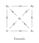 \input fig4tex %%%%%%%%%%%%%%%%%%%%%%%%%%%%%%%%%%%%%%%%%%%%%%%%%%%%%%%%%%%%%%%%%%%%%%%%%%%% % 1. Definition des points caracteristiques de la geometrie \figinit{cm} \figpt 0:$O$(0,0)\figpt 1:(3,0)\figpt 2:(0,3)\figpt 3:(3,3) \figptbary 4:[0,1,2,3; 1,1,1,1] % 2. Creation du fichier graphique \psbeginfig{} % Draw the connections between nodes \psfcconnect[0,1]\psfcconnect[0,2]\psfcconnect[2,3]\psfcconnect[1,3] \psfcconnect[0,4]\psfcconnect[4,3]\psfcconnect[1,4]\psfcconnect[4,2] % Draw the frames at each node \psset (color=1) \psset flowchart(shape=ellipse) \psfcnode[0,1,2,3,4]{} \psendfig % 3. Inscription du texte sur le dessin \figvisu{\figBoxA}{Example}{% \figwritec[0,1,2,3,4]{} } \centerline{\box\figBoxA} %%%%%%%%%%%%%%%%%%%%%%%%%%%%%%%%%%%%%%%%%%%%%%%%%%%%%%%%%%%%%%%%%%%%%%%%%%%% \bye |